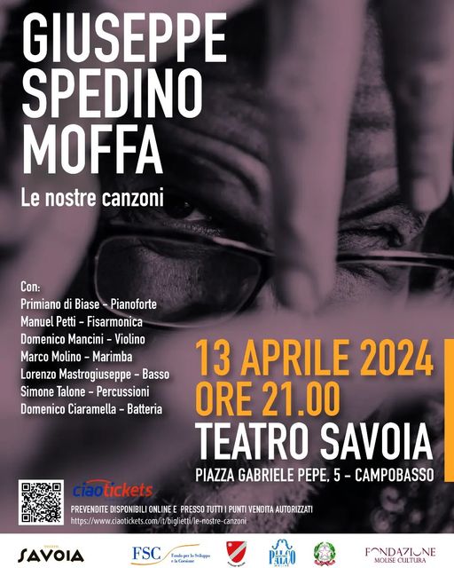 Penultimo appuntamento in cartellone per la stagione di spettacoli 2023/2024 al Teatro Savoia di Campobasso. Spedino Moffa porta sul palco la sua storica produzione, non senza toccare il tributo al poeta Eugenio Cirese, attraverso le melodie e le parole contenute nelle canzoni pubblicate nel 2022 da Squilibri Editore nel cd "UaUa’", o al cantautore pugliese Matteo Salvatore.